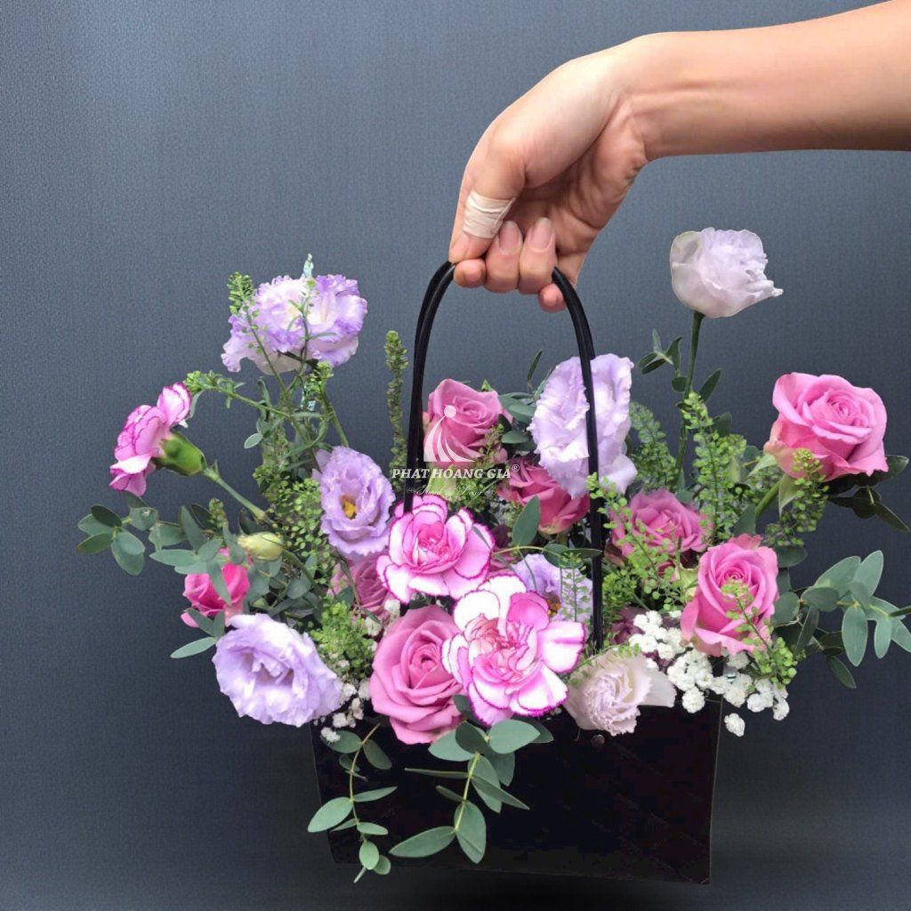 Bó hoa này mang phong cách hiện đại nhưng vẫn giữ được nét thanh lịch cổ điển, như một tác phẩm nghệ thuật độc đáo. Sự kết hợp hài hòa giữa các gam màu nhẹ nhàng và nổi bật tạo nên một bức tranh màu sắc tinh tế. Mỗi sắc màu đều góp phần kể lên câu chuyện riêng, hòa quyện thành một tổng thể hoàn mỹ.