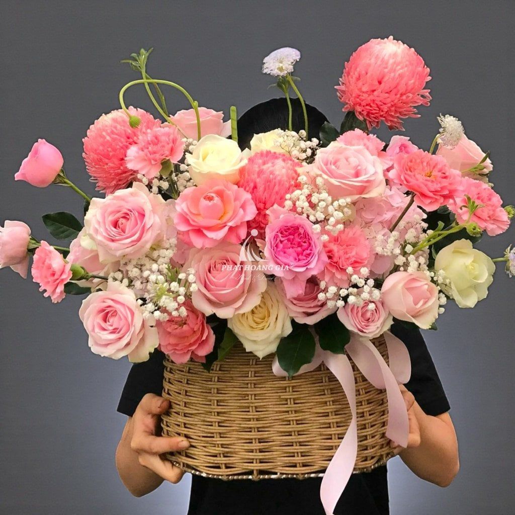 Phong cách hiện đại và tối giản là điểm nhấn nổi bật của giỏ hoa này. Màu sắc hài hòa, không quá rực rỡ nhưng đủ để thu hút ánh nhìn, tạo nên một tổng thể thanh lịch và trang nhã. Sự phối hợp tinh tế giữa các gam màu làm tôn lên vẻ đẹp tự nhiên, khiến giỏ hoa trở thành một tác phẩm nghệ thuật hoàn mỹ.