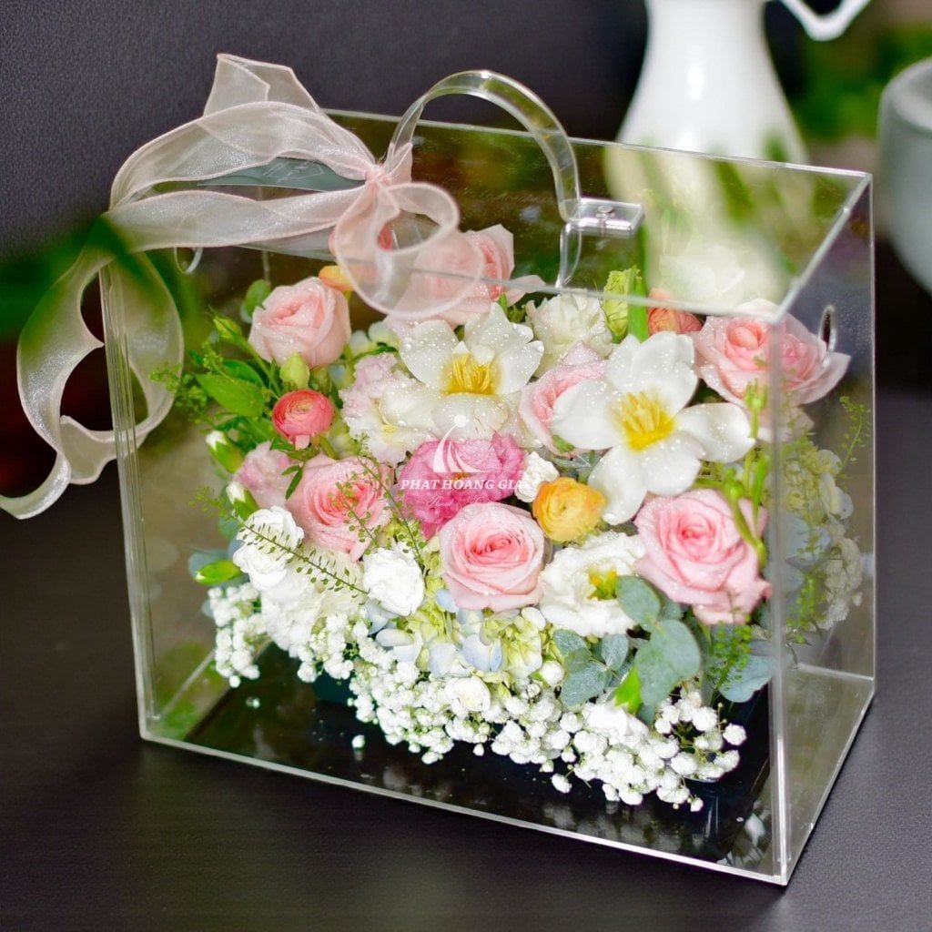 Một số hoa phụ, lá trang trí hoặc phụ kiện có thể được thay thế bằng loại tương tự (về màu sắc, kiểu dáng, giá trị) tùy tình trạng sẵn có, nhưng vẫn đảm bảo tính thẩm mỹ của sản phẩm.