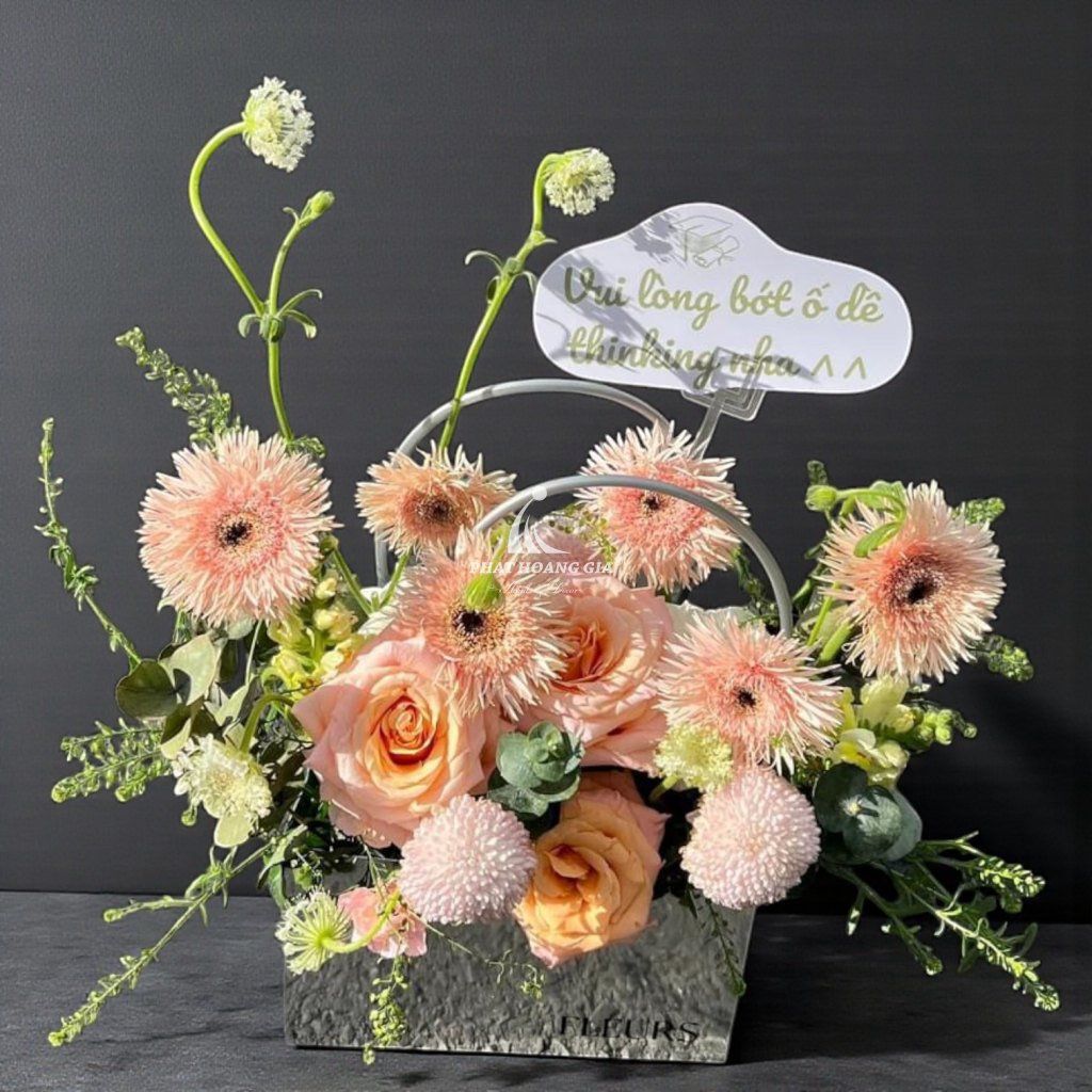 Một số hoa phụ, lá trang trí hoặc phụ kiện có thể được thay thế bằng loại tương tự (về màu sắc, kiểu dáng, giá trị) tùy tình trạng sẵn có, nhưng vẫn đảm bảo tính thẩm mỹ của sản phẩm.