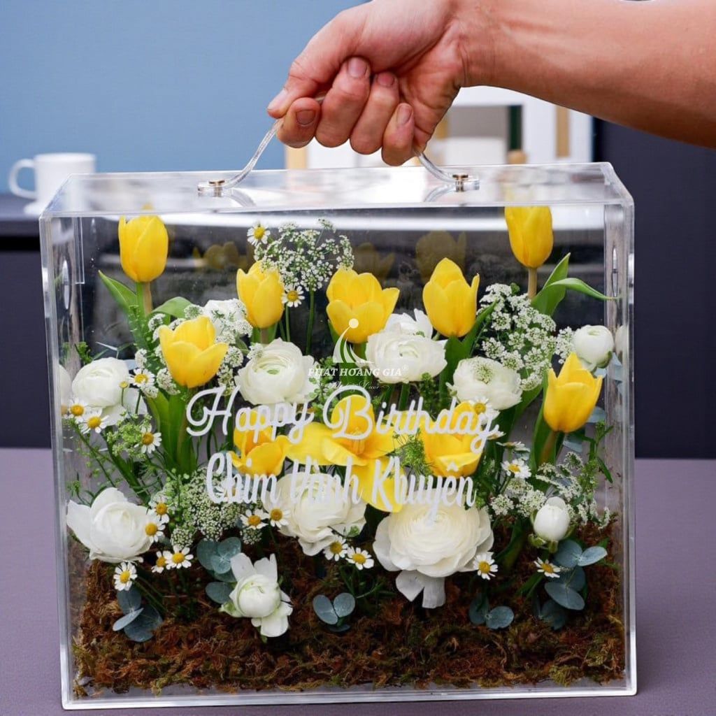 Một số hoa phụ, lá trang trí hoặc phụ kiện có thể được thay thế bằng loại tương tự (về màu sắc, kiểu dáng, giá trị) tùy tình trạng sẵn có, nhưng vẫn đảm bảo tính thẩm mỹ của sản phẩm.