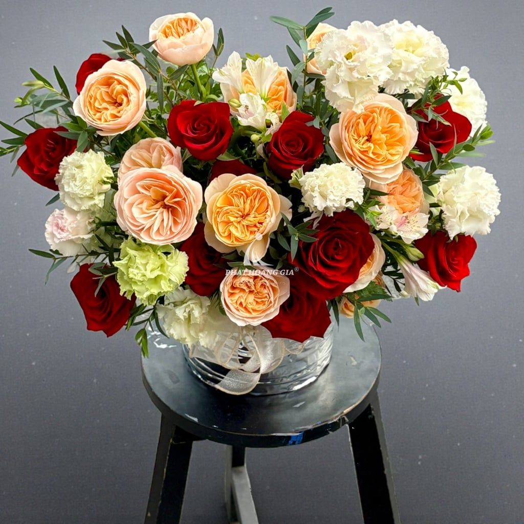 Một số hoa phụ, lá trang trí hoặc phụ kiện có thể được thay thế bằng loại tương tự (về màu sắc, kiểu dáng, giá trị) tùy tình trạng sẵn có, nhưng vẫn đảm bảo tính thẩm mỹ của sản phẩm.