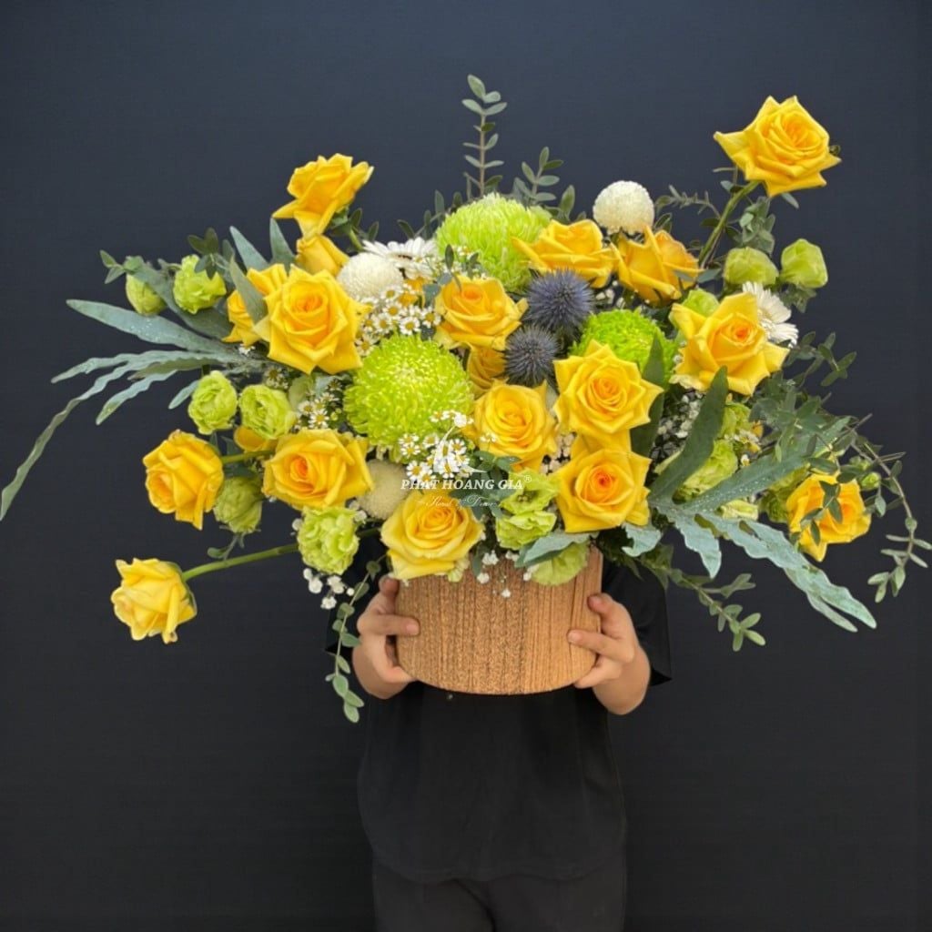 Với phong cách hiện đại và sang trọng, giỏ hoa này khéo léo kết hợp những sắc màu dịu dàng và tươi mới, tạo nên một tổng thể hài hòa và bắt mắt. Những gam màu nhẹ nhàng không chỉ làm dịu lòng người mà còn mang đến cảm giác bình yên và thư thái. Sự sắp xếp tinh tế và độc đáo của từng bông hoa khiến giỏ hoa trở thành một tác phẩm nghệ thuật thực sự.