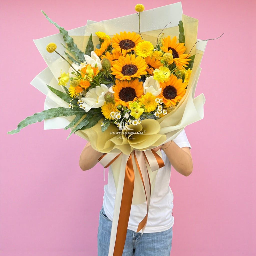 Trong vẻ đẹp của "Hạt Nắng 13", người ta dễ dàng cảm nhận được một luồng sáng tươi mới, mang lại niềm vui và sự ấm áp. Được ví như những tia nắng đầu ngày, bó hoa này truyền tải thông điệp về sự hy vọng và khởi đầu mới. Nó khơi dậy cảm giác nhẹ nhàng, yên bình, nhưng không kém phần lãng mạn, tựa như một bản nhạc du dương của cuộc sống.