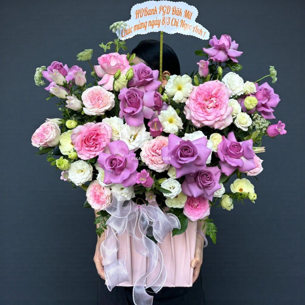 Bó hoa của Ngày Đặc Biệt 7 được thiết kế với sự tinh tế và phong cách sang trọng, mang đến một cảm giác thanh lịch và quyến rũ. Màu sắc chủ đạo là sự kết hợp hài hòa giữa những tông màu nhẹ nhàng và những điểm nhấn rực rỡ, tạo nên một tác phẩm nghệ thuật hoa đầy mê hoặc. Sự phối hợp này không chỉ làm nổi bật vẻ đẹp tự nhiên mà còn thể hiện sự tinh tế trong từng chi tiết.
