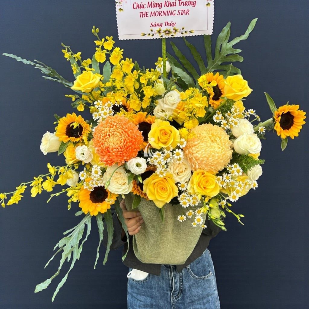 Sắc Nắng Yên Bình 11 mang đến một cảm giác nhẹ nhàng, thanh thoát tựa như ánh nắng buổi sớm lan tỏa trên cánh đồng hoa. Mỗi chi tiết trong bó hoa này dường như kể lại câu chuyện về sự bình yên, hạnh phúc và niềm vui nhỏ bé trong cuộc sống hằng ngày. Nó khơi gợi trong lòng người thưởng thức một cảm giác ấm áp, như được ôm trọn bởi những tia nắng dịu dàng, mang lại niềm an lành và sự thư thái.