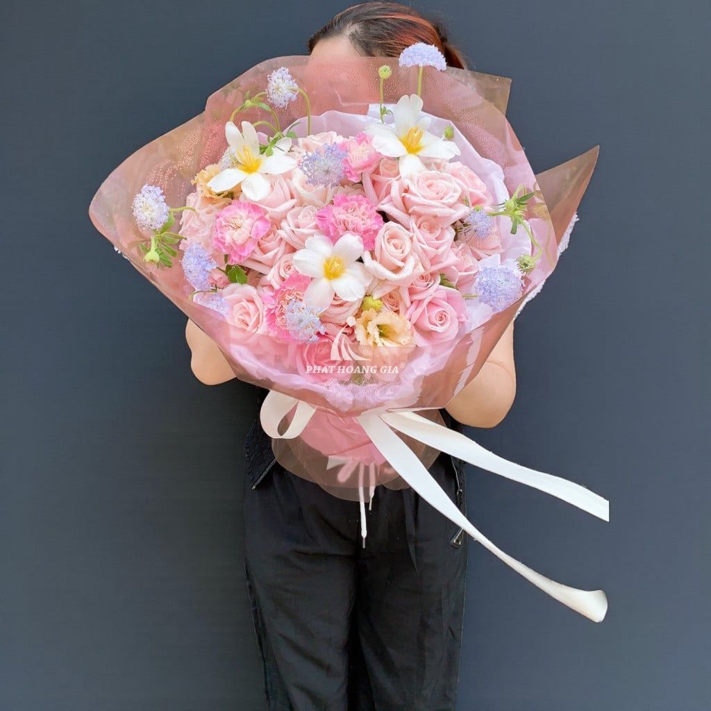 Sự phối hợp hoàn hảo giữa các sắc màu trong bó hoa này tạo nên một phong cách hiện đại và nổi bật. Những gam màu từ nhẹ nhàng đến rực rỡ hòa quyện một cách khéo léo, tựa như một bản giao hưởng đầy màu sắc. Từng cánh hoa được chọn lọc kỹ càng, tạo nên một tổng thể hài hòa và bắt mắt, thể hiện sự chỉn chu và tinh tế.