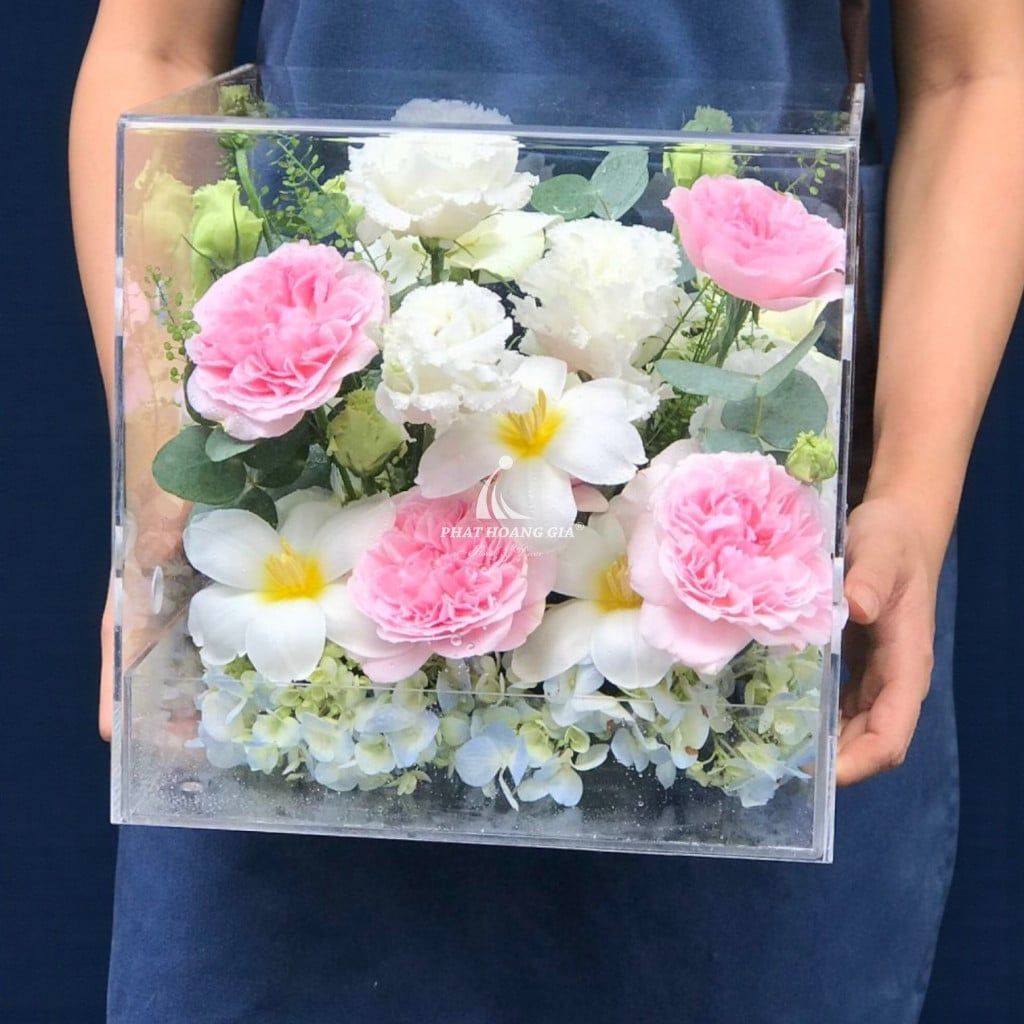 Một số hoa phụ, lá trang trí hoặc phụ kiện có thể được thay thế bằng loại tương tự (về màu sắc, kiểu dáng, giá trị) tùy tình trạng sẵn có, nhưng vẫn đảm bảo tính thẩm mỹ của sản phẩm.